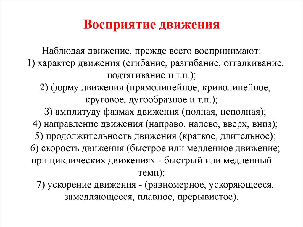 Восприятие движенияНаблюдая движение, прежде всего воспринимают: