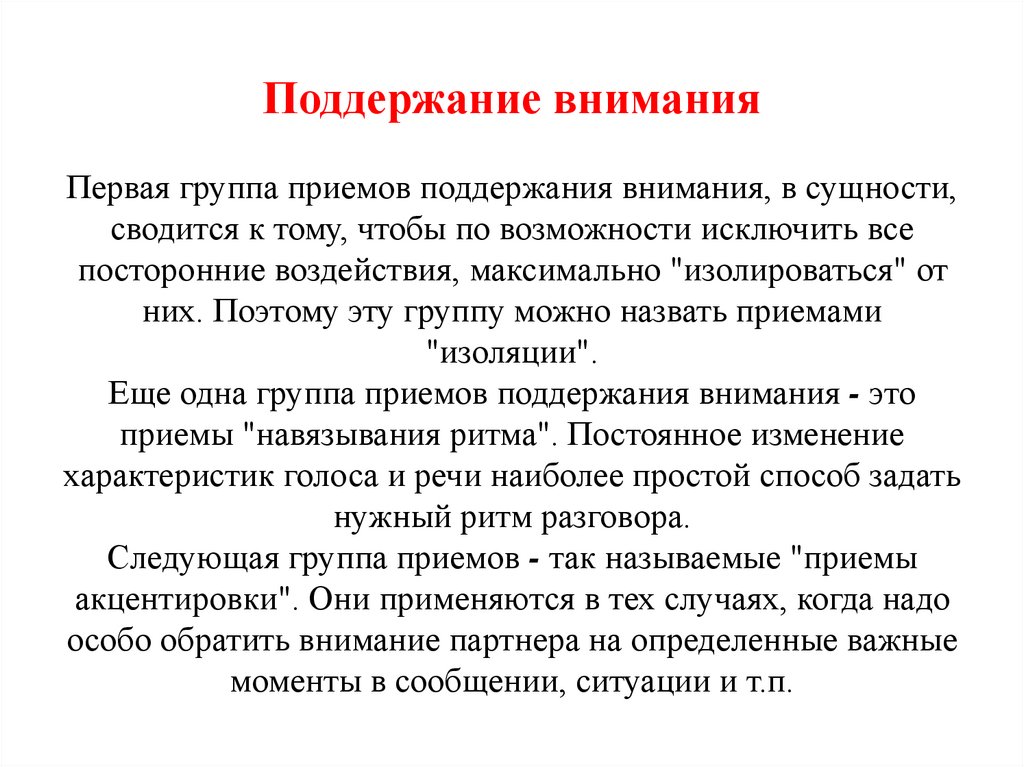 Поддержание вниманияПервая группа приемов поддержания внимания, в сущности,