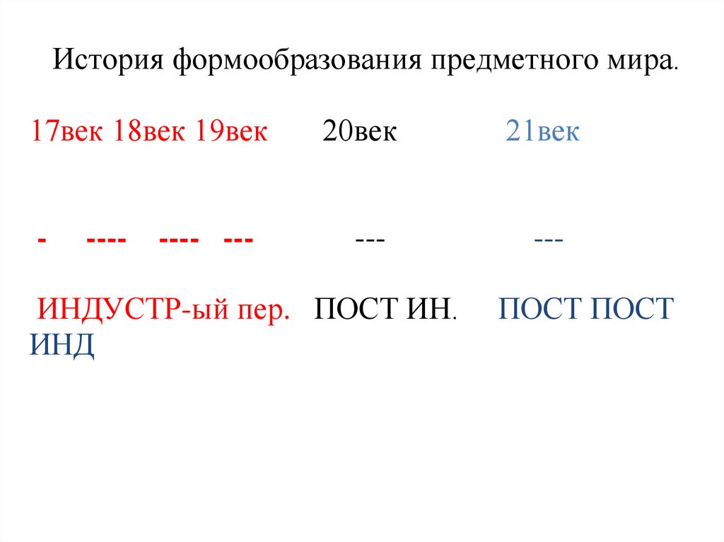 История формообразования предметного мира.Древн.мир. Сред-век.Возрожд.17в18в19в20в 21в