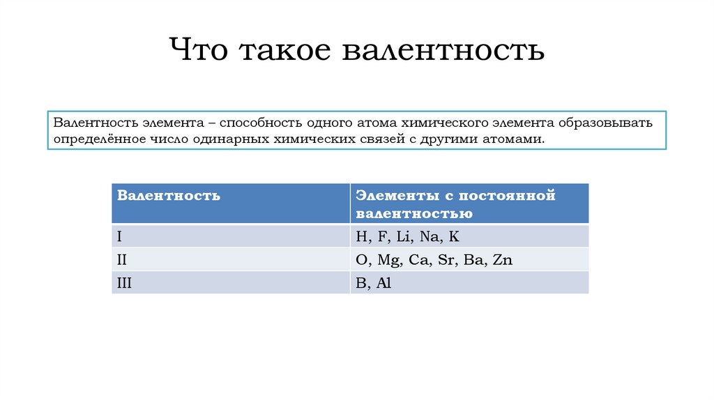 Что такое валентностьВалентность элемента – способность одного атома химического элемента образовывать