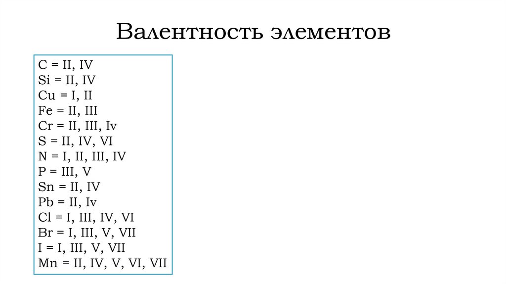 Валентность элементовC = II, IV