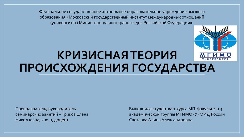 Федеральное государственное автономное образовательное учреждение высшегообразования «Московский государственный институт международных отношений