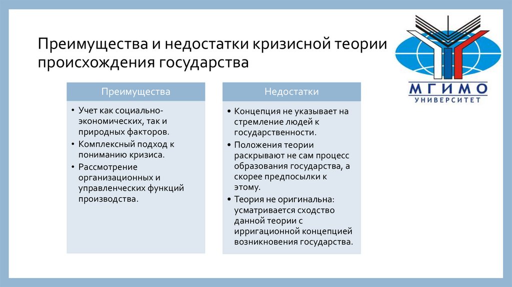 Преимущества и недостатки кризисной теориипроисхождения государства