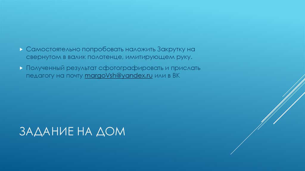 Самостоятельно попробовать наложить Закрутку насвернутом в валик полотенце, имитирующем руку.