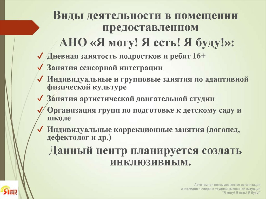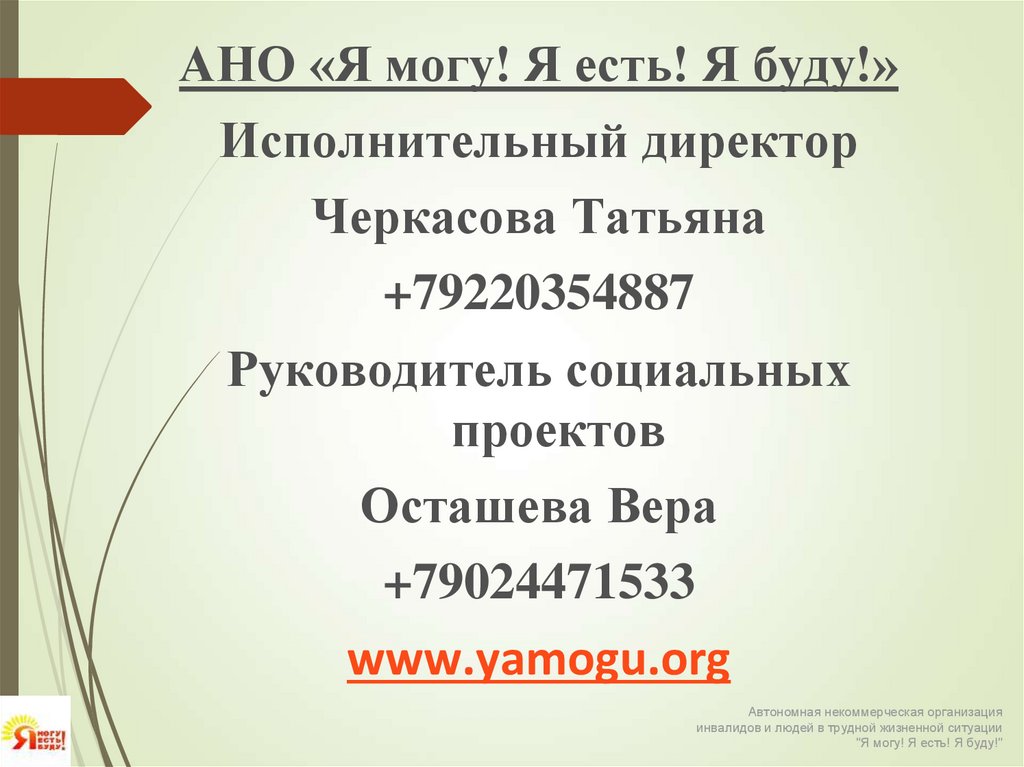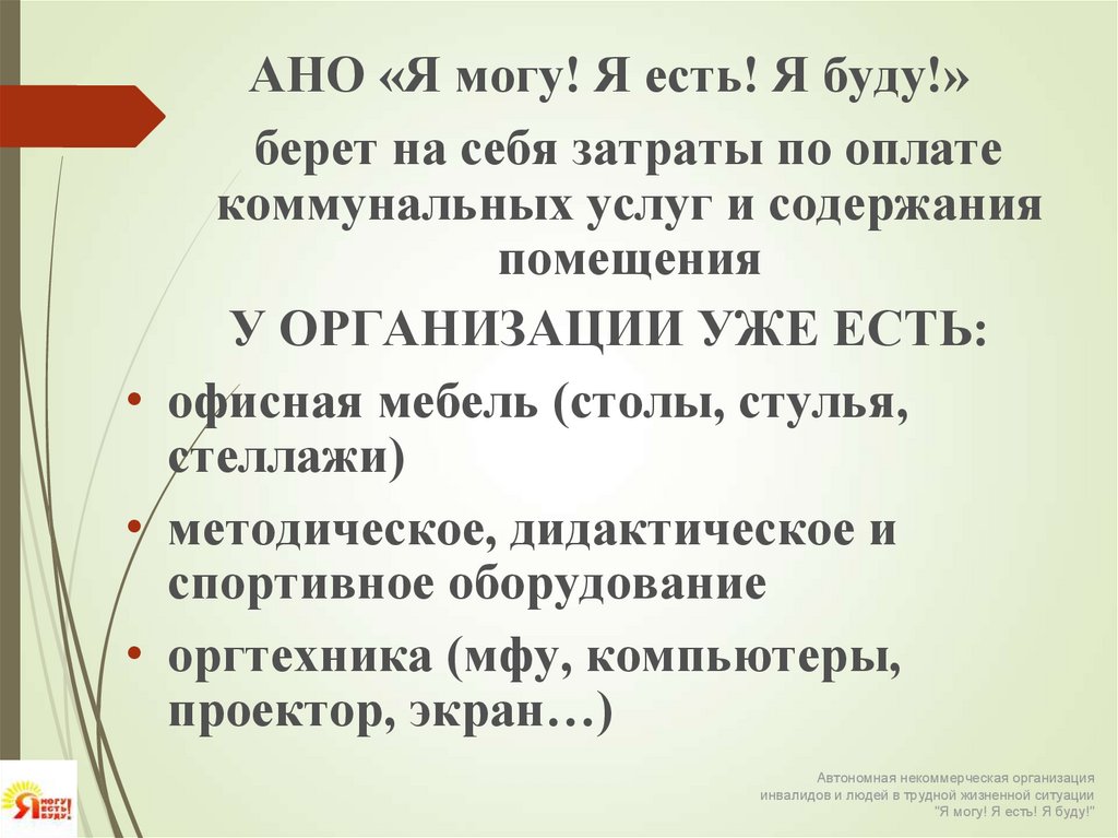 АНО «Я могу! Я есть! Я буду!»берет на себя затраты по оплате