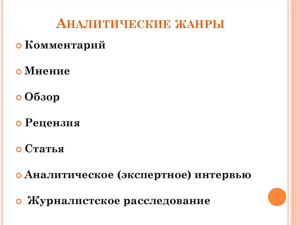 АНАЛИТИЧЕСКИЕ ЖАНРЫКомментарий