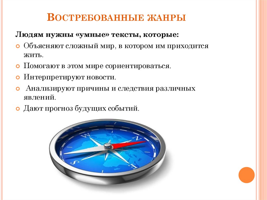 ВОСТРЕБОВАННЫЕ ЖАНРЫЛюдям нужны «умные» тексты, которые: