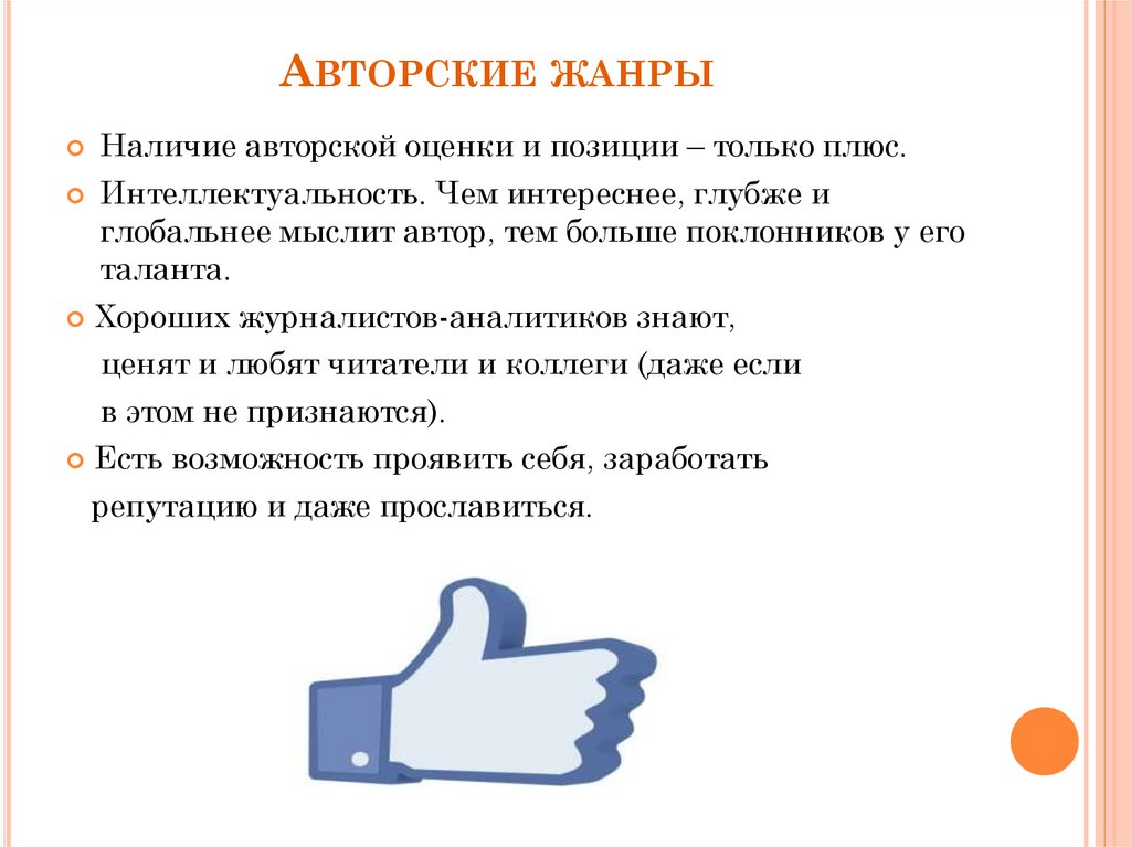 АВТОРСКИЕ ЖАНРЫНаличие авторской оценки и позиции – только плюс.