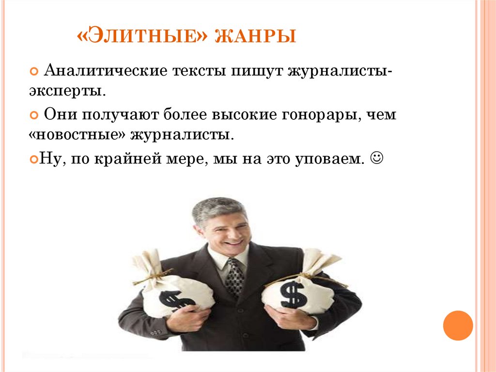 «ЭЛИТНЫЕ» ЖАНРЫАналитические тексты пишут журналистыэксперты.