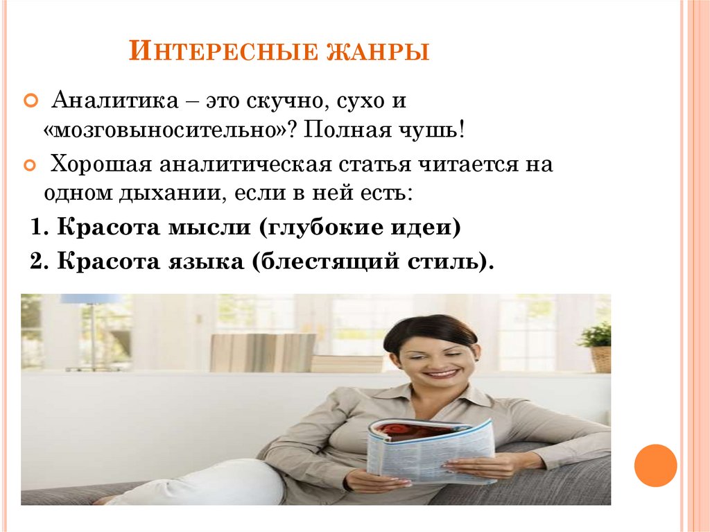 ИНТЕРЕСНЫЕ ЖАНРЫАналитика – это скучно, сухо и