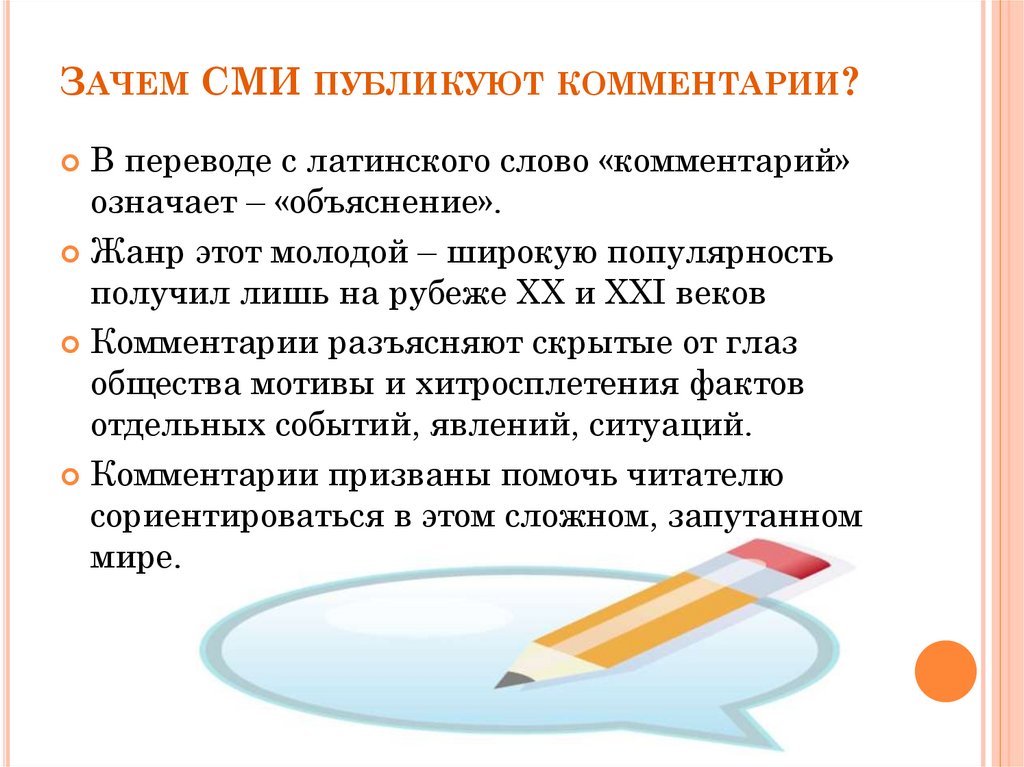 ЗАЧЕМ СМИ ПУБЛИКУЮТ КОММЕНТАРИИ?В переводе с латинского слово «комментарий»