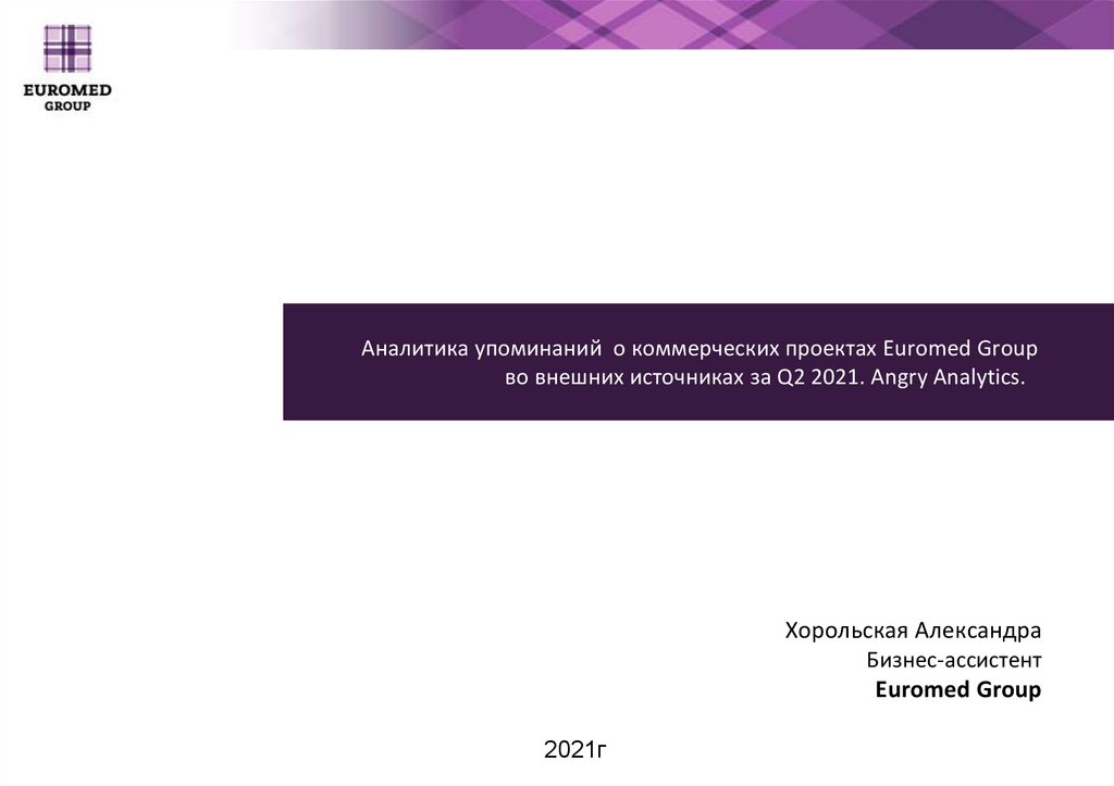Аналитика упоминаний о коммерческих проектах Euromed Groupво внешних источниках за Q2 2021. Angry Analytics.