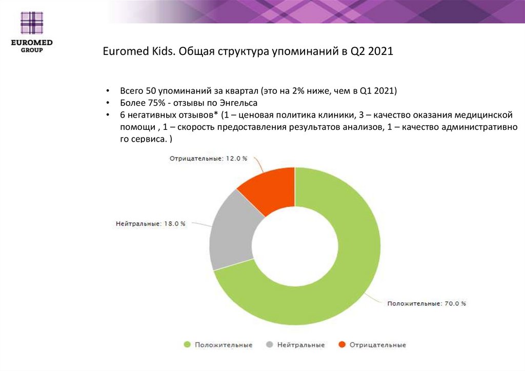Euromed Kids. Общая структура упоминаний в Q2 2021Всего 50 упоминаний за квартал (это на 2% ниже, чем в Q1 2021)
