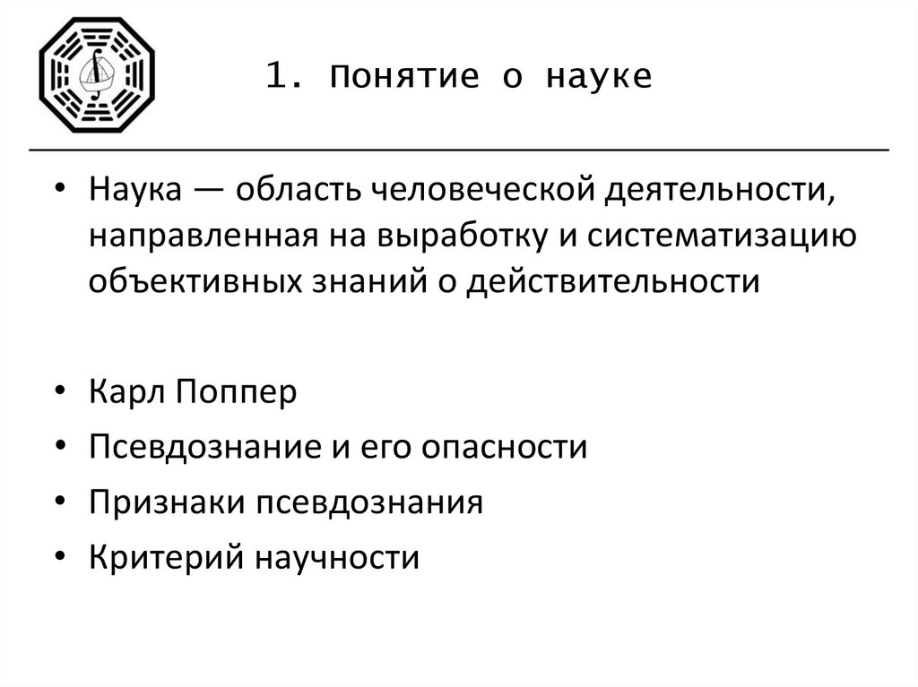 1. Понятие о науке• Наука — область человеческой деятельности,