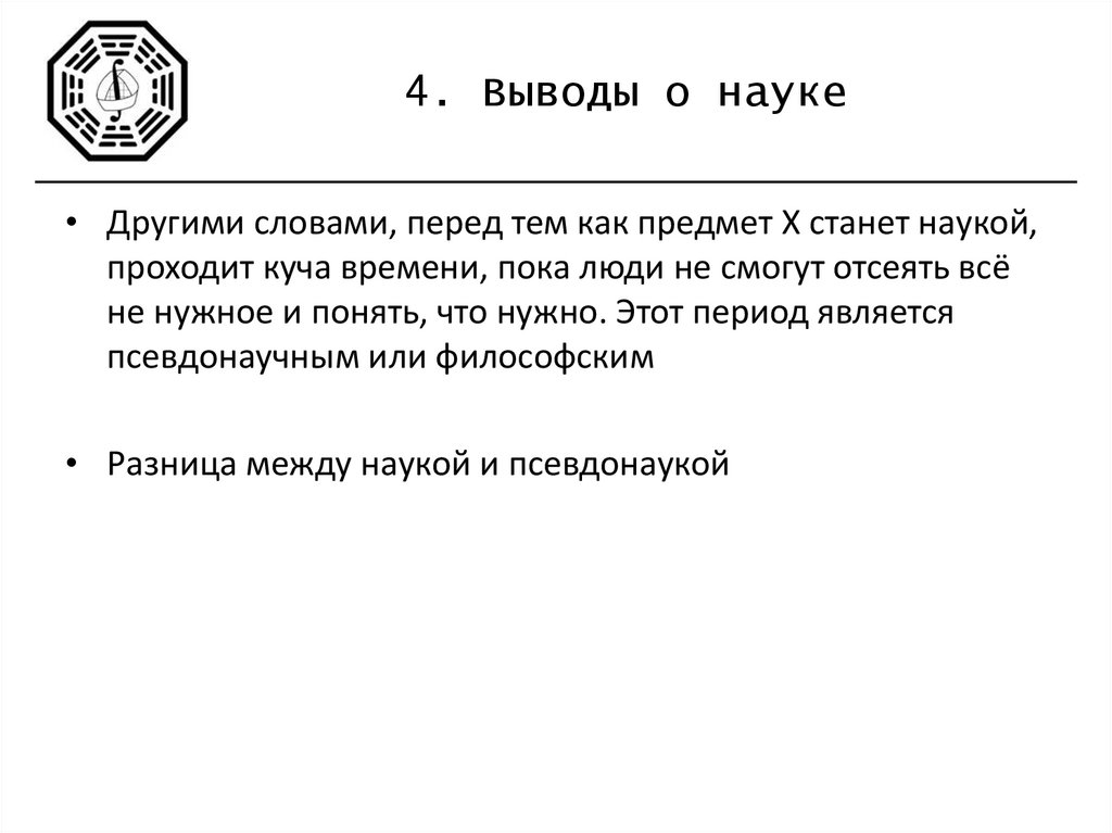 4. Выводы о науке• Другими словами, перед тем как предмет Х станет наукой,