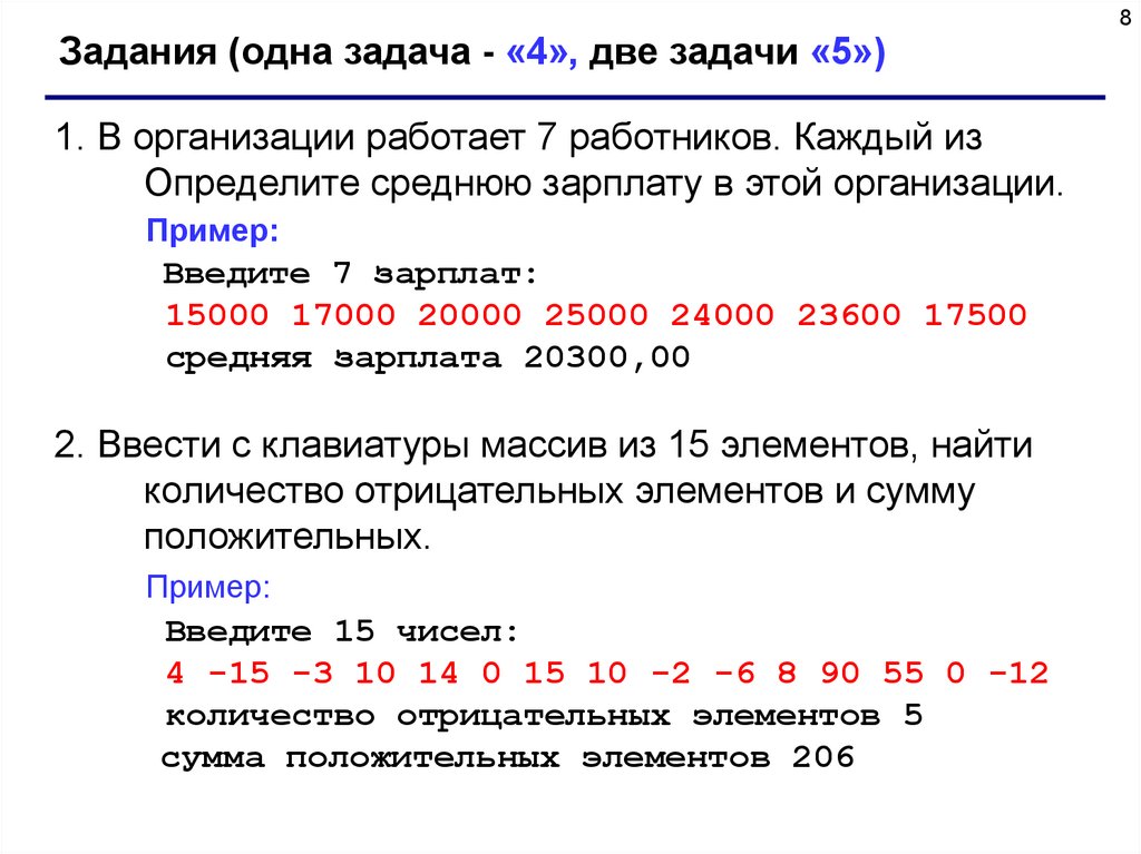 8Задания (одна задача - «4», две задачи «5»)