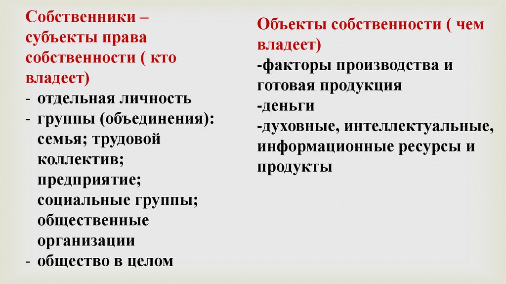 собственности ( кто