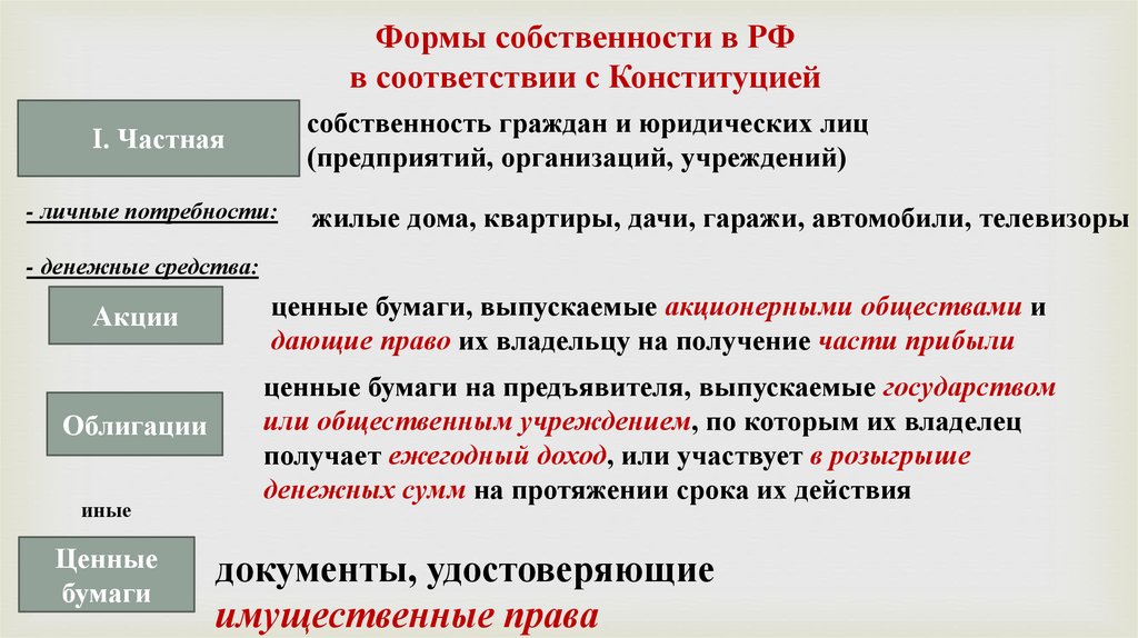 Формы собственности в РФв соответствии с Конституцией