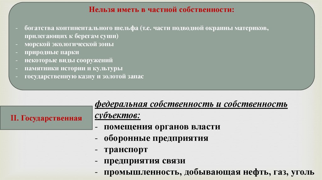 Нельзя иметь в частной собственности:-