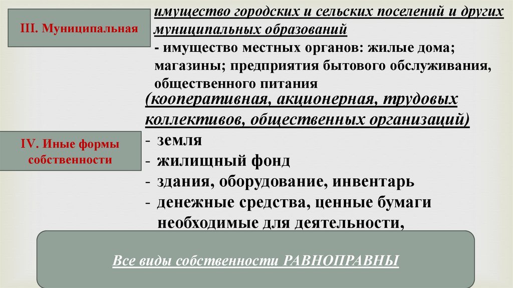 III. МуниципальнаяIV. Иные формы