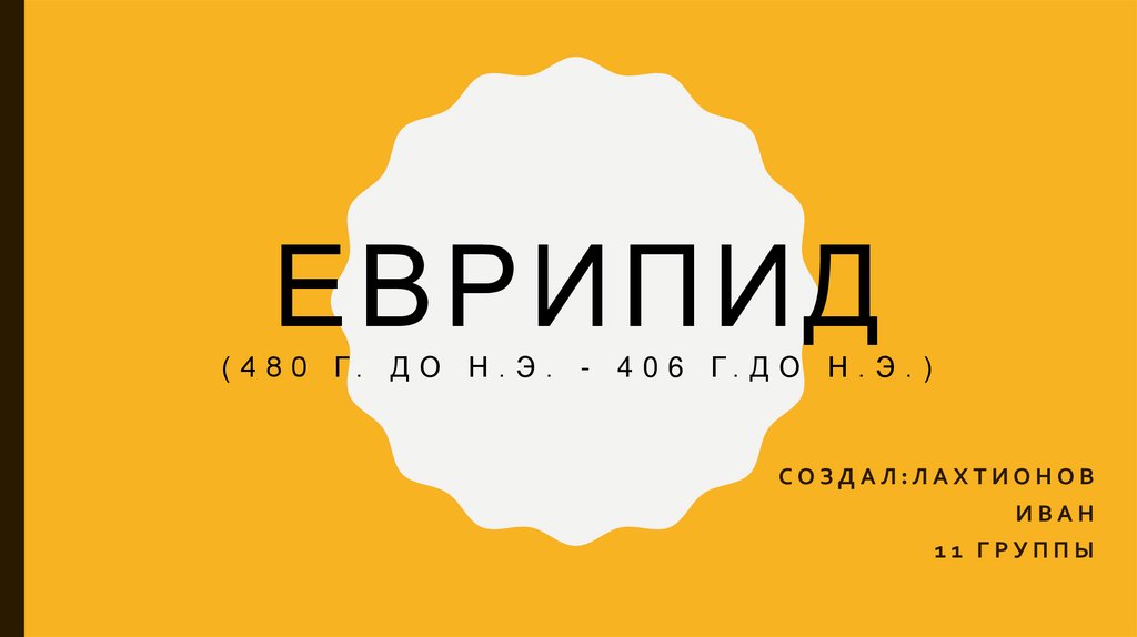 ЕВРИПИД( 4 8 0 Г. Д О Н . Э . - 4 0 6 Г. Д О Н . Э . )