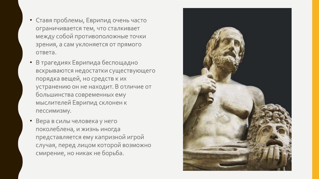 • Ставя проблемы, Еврипид очень частоограничивается тем, что сталкивает