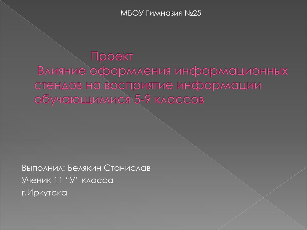стендов МБОУ Гимназии 25г. Иркутска с точки зрения