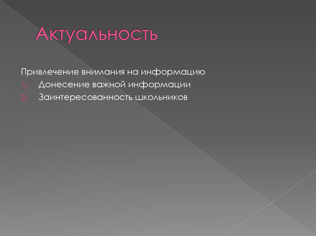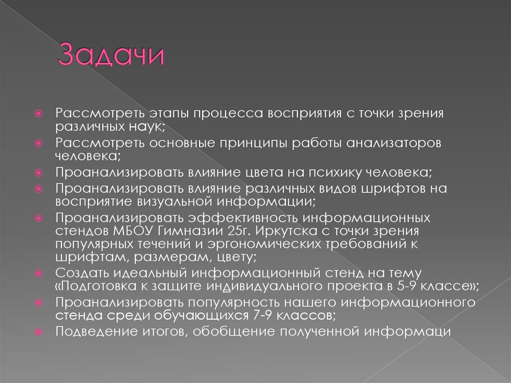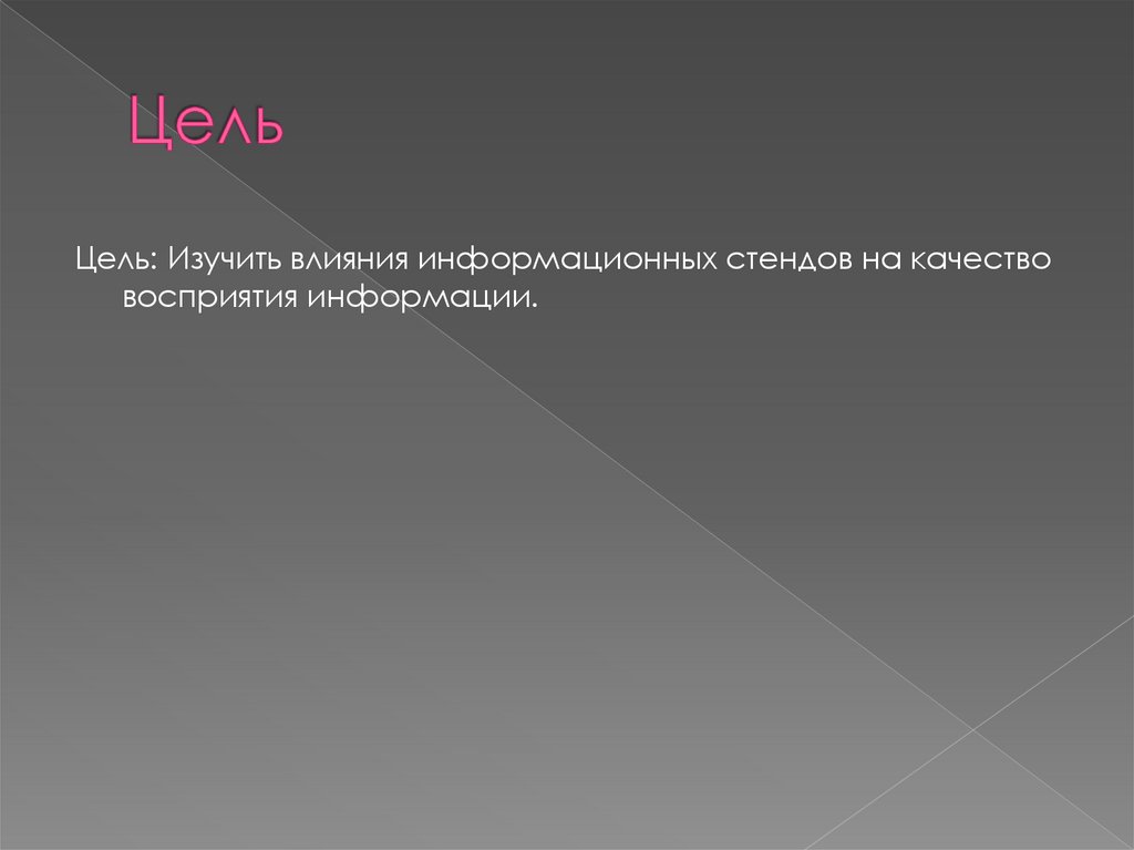 Цель: Изучить влияния информационных стендов на качествовосприятия информации.