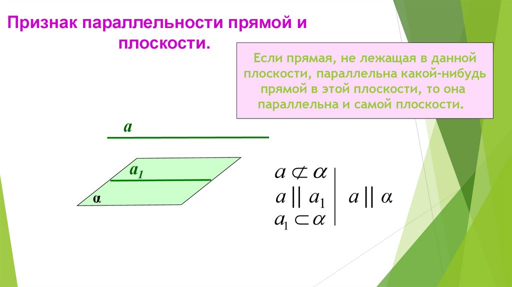 Признак параллельности прямой иплоскости.