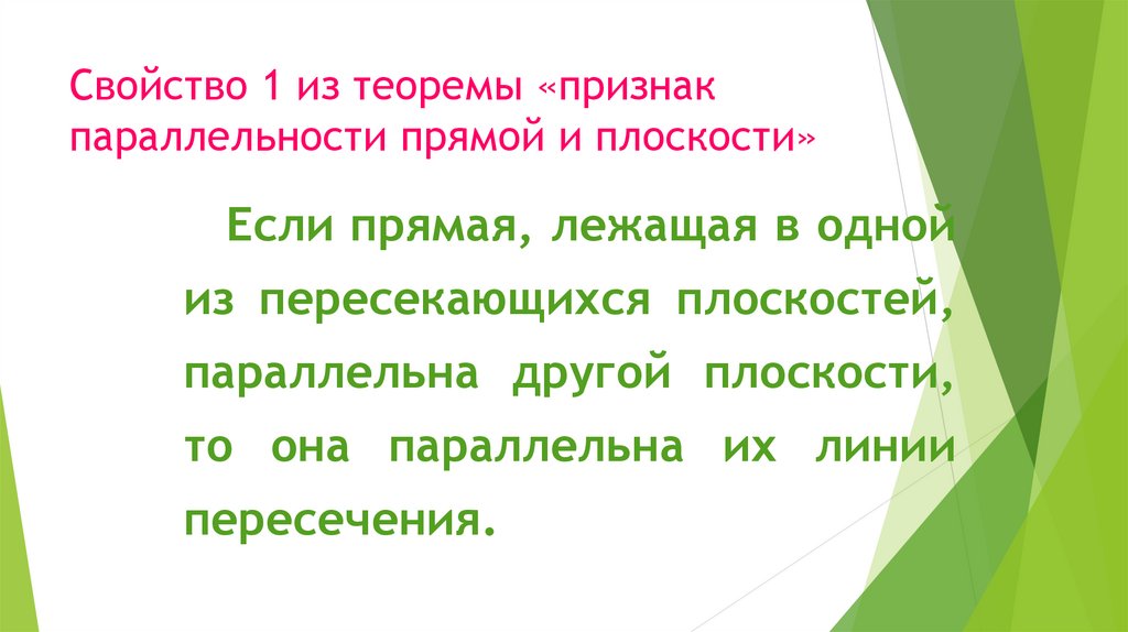 Свойство 1 из теоремы «признакпараллельности прямой и плоскости»
