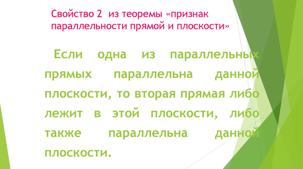 Свойство 2 из теоремы «признакпараллельности прямой и плоскости»