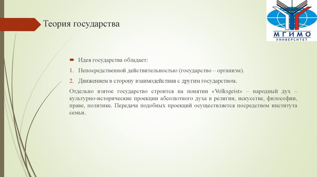 Отдельно взятое государство строится на понятии «Volksgeist» – народный дух –