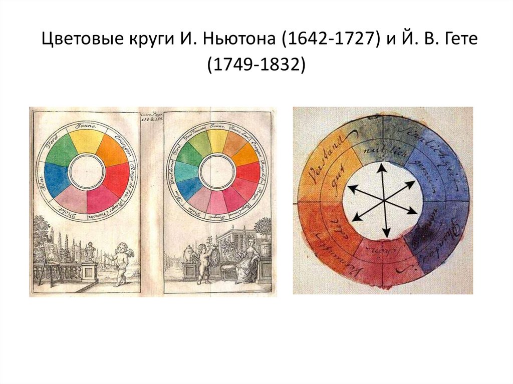 Цветовые круги И. Ньютона (1642-1727) и Й. В. Гете(1749-1832)
