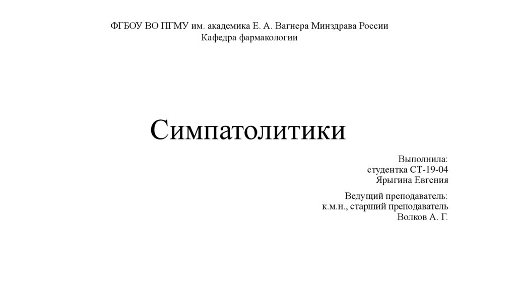 ФГБОУ ВО ПГМУ им. академика Е. А. Вагнера Минздрава РоссииКафедра фармакологии