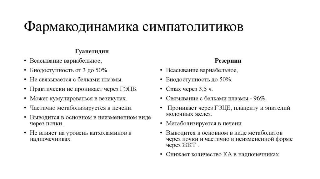 Фармакодинамика симпатолитиковГуанетидин