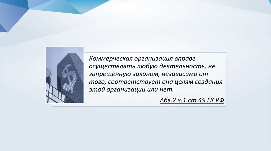 Коммерческая организация вправеосуществлять любую деятельность, не