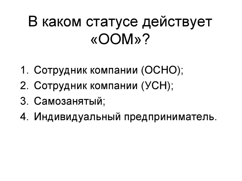 1. В каком статусе действует «ООМ»?