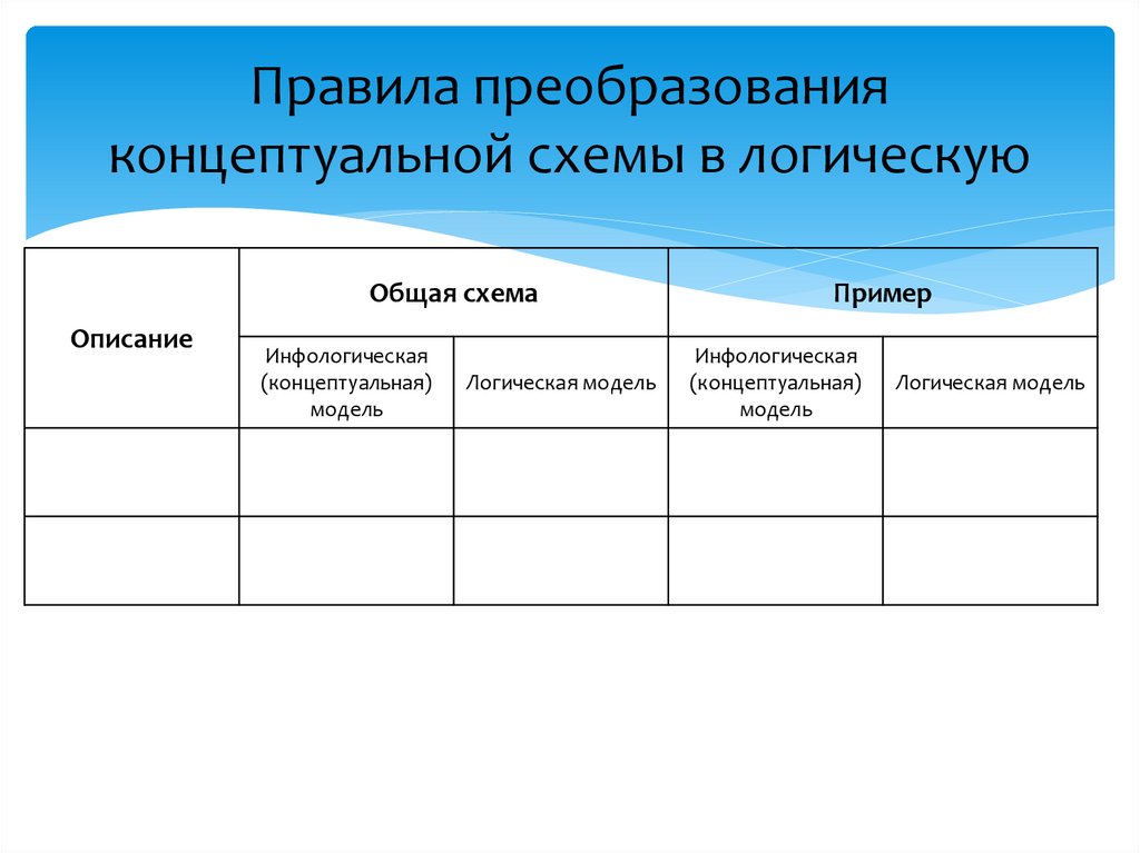 Логическое проектирование. Тема 5. Правила преобразования концептуальной схемы в логическую