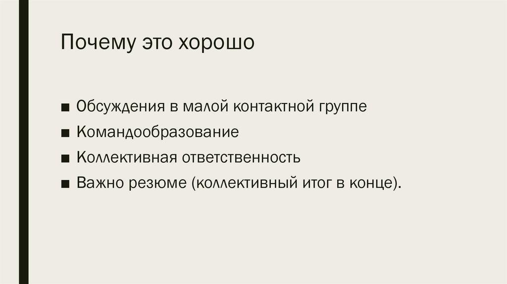 Почему это хорошо■ Обсуждения в малой контактной группе