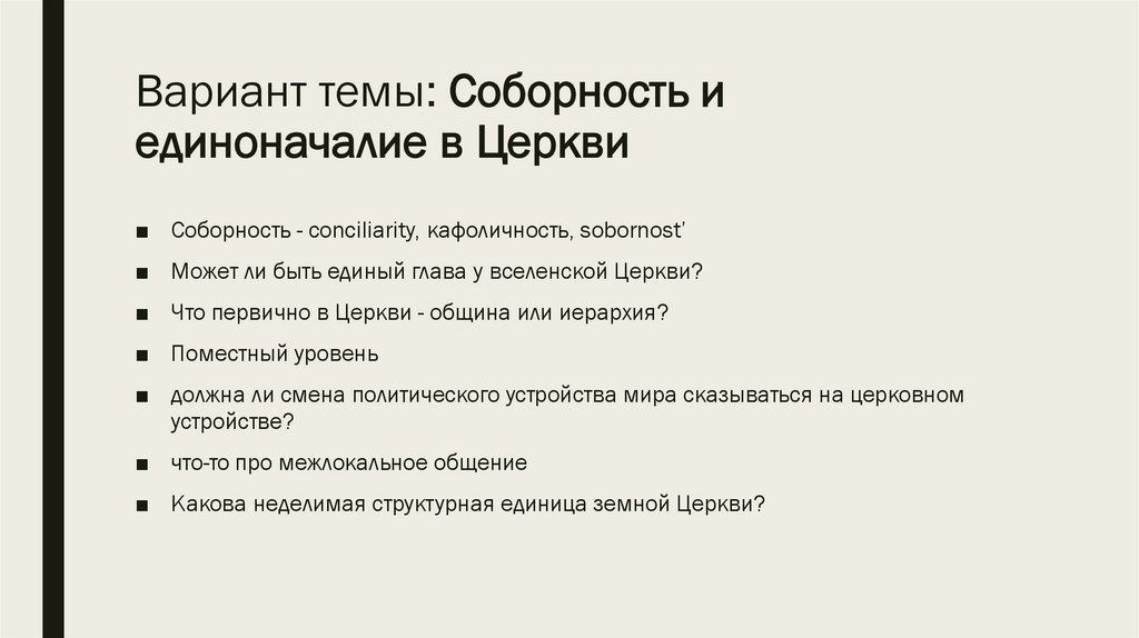 ■ Соборность - conciliarity, кафоличность, sobornost’