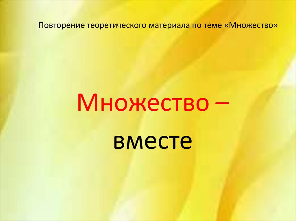 Повторение теоретического материала по теме «Множество»Множество –