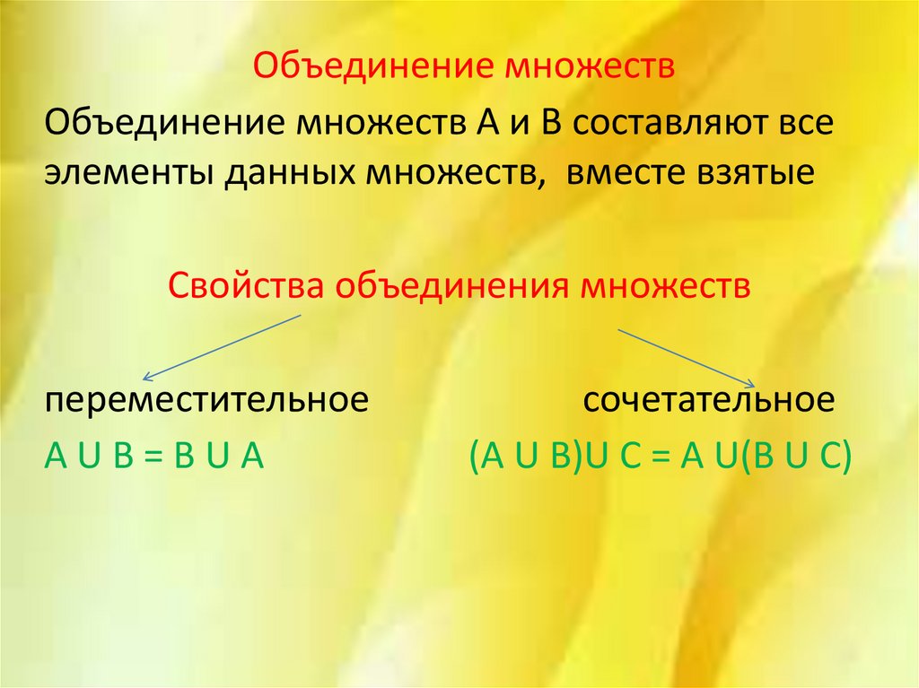 Свойства объединения множеств