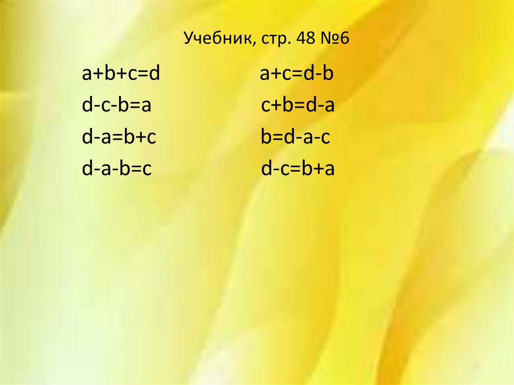 Учебник, стр. 48 №6a+b+c=d