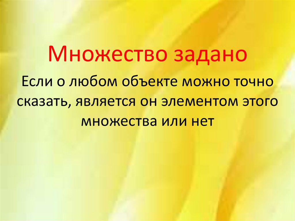 Множество заданоЕсли о любом объекте можно точно
