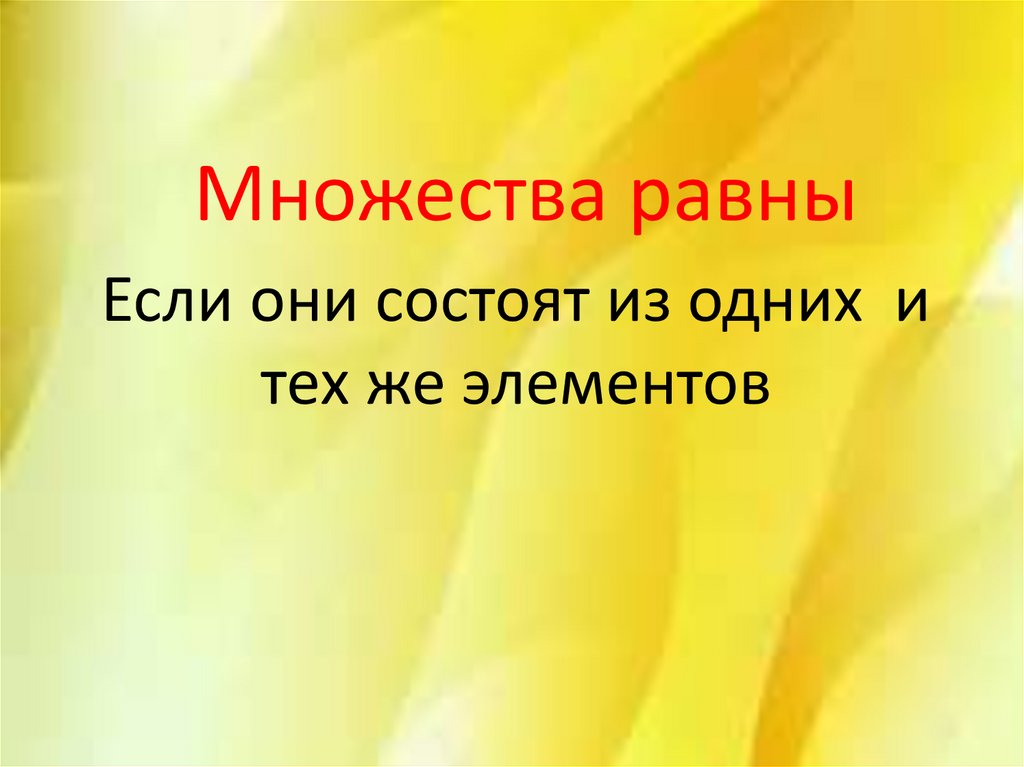 Множества равныЕсли они состоят из одних и
