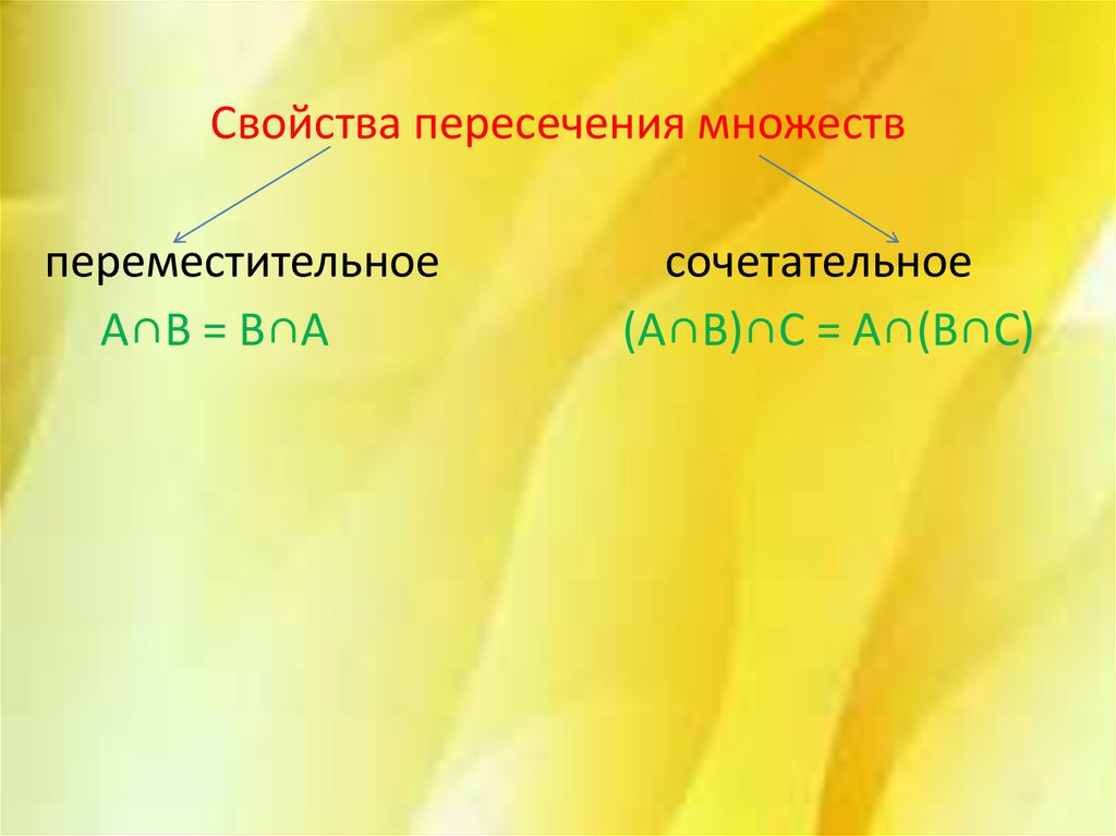 Свойства пересечения множествпереместительное