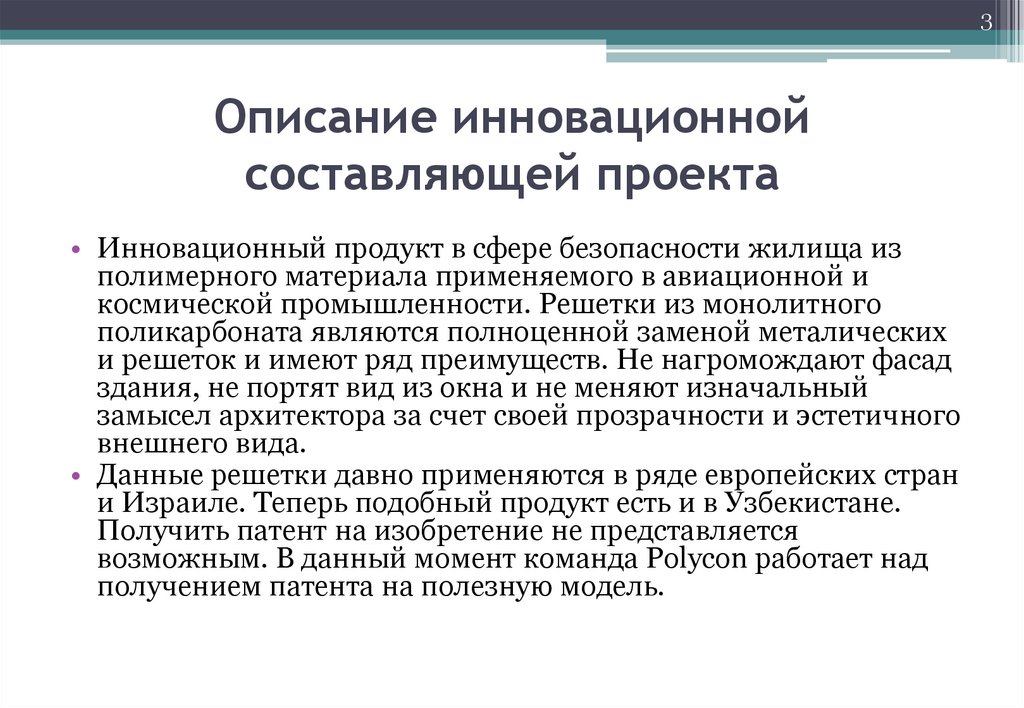 3Описание инновационной