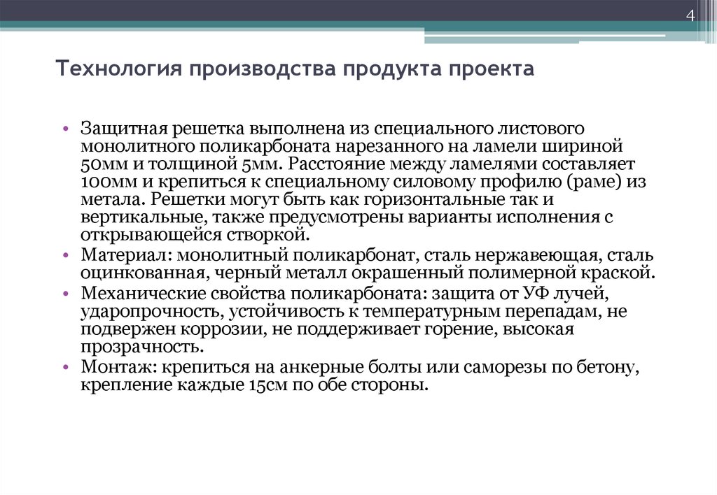 4Технология производства продукта проекта