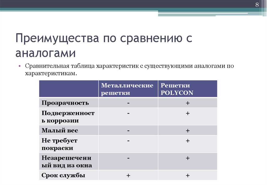 8Преимущества по сравнению с