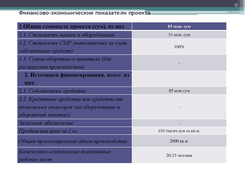 9Финансово-экономические показатели проекта